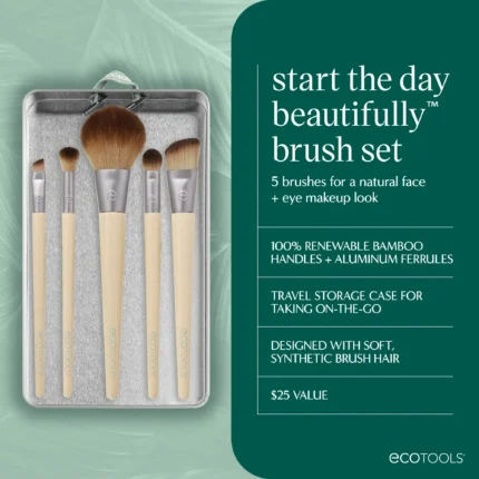 EcoTools Start the Day Beautifully Kit Makeup Brush Set with Storage Tray, 6 Piece Set