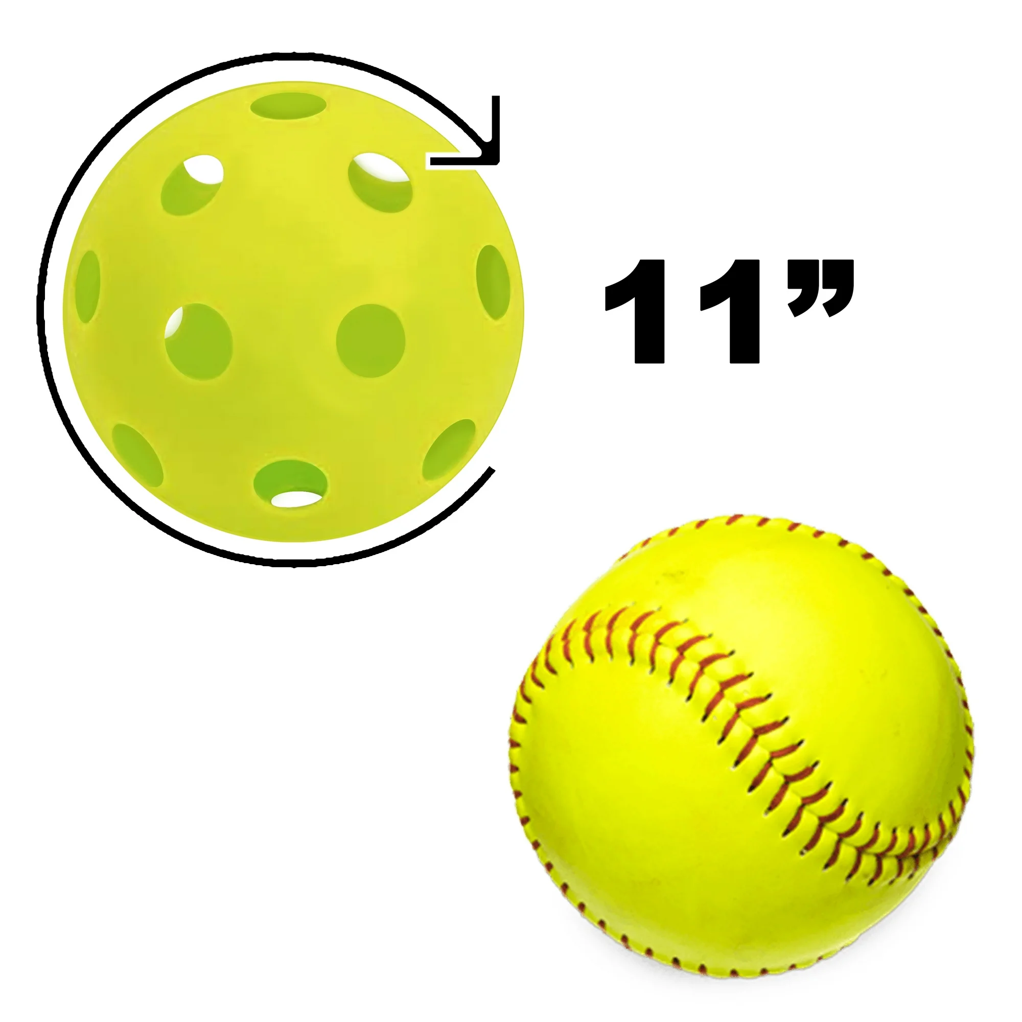The New Athletic Works 11 in. Practice Softballs are built to last season after season and designed to be the same size as regulation. These plastic practice softballs are constructed with a durable design that is hollow and drilled with evenly spaced holes. Use this 6 pack of practice balls for pitching, batting, throwing and catching drills to improve your baseball or softball game. These practice softballs will improve hand-eye coordination without the risk of injury. This set comes in a mesh carry case with drawstring and weigh 1 oz each, making these practice balls ideal to throw right in your bat bag!