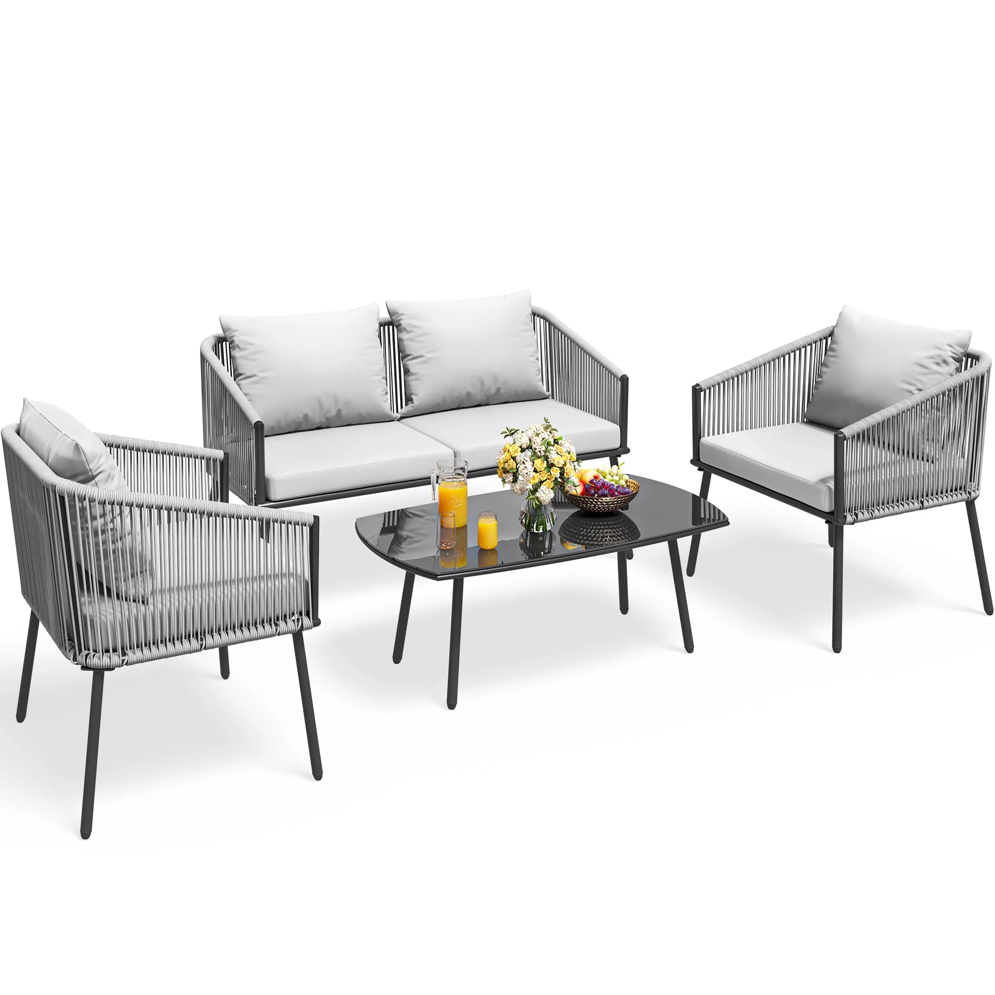 - COMFORTABLE SEAT: Looking to experience outdoor leisure in style and comfort? This patio furniture set fits the bill; Ample seat space with thick cushions allows cozy parent-child time, as well as great snuggling with your pet; Cushion cover is detachable for easy maintenance
