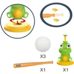 - Toddler Baseball Set includes: 1x pitching dinosaur, 1x bat, 3x baseballs.