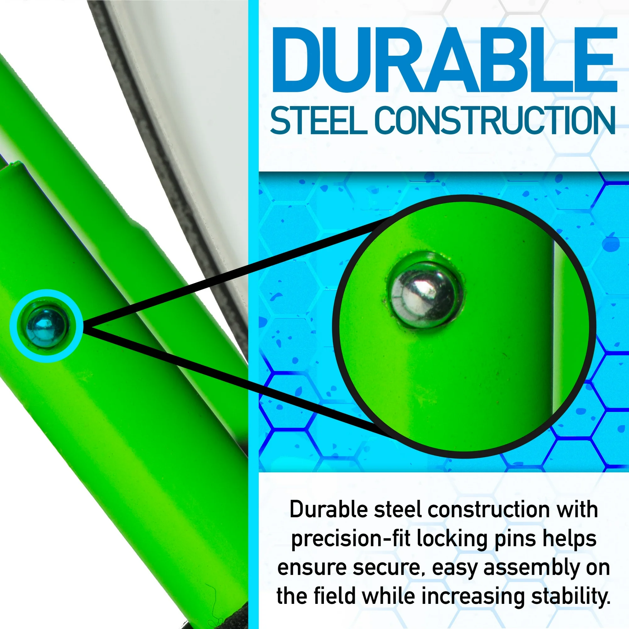 - DURABLE STEEL CONSTRUCTION: Durable steel construction with precision-fit locking pins helps ensure secure, easy assembly on the field while increasing stability