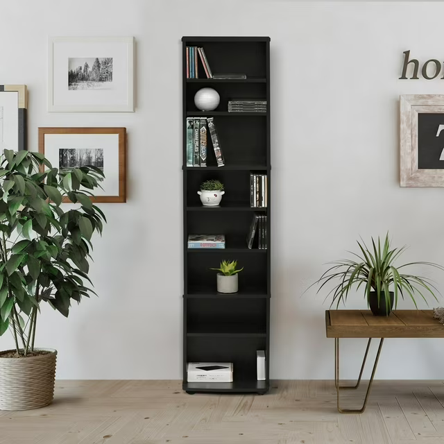 Simply stylish design yet functional and suitable for any room that need additional storage space. Material:Particle board Adjustable shelves provide easy storage and display for decorative and home living accessories. Easy home assembly with instructional manual included. Dimensions:12.75(W)x54.1(H)x5.75(D)