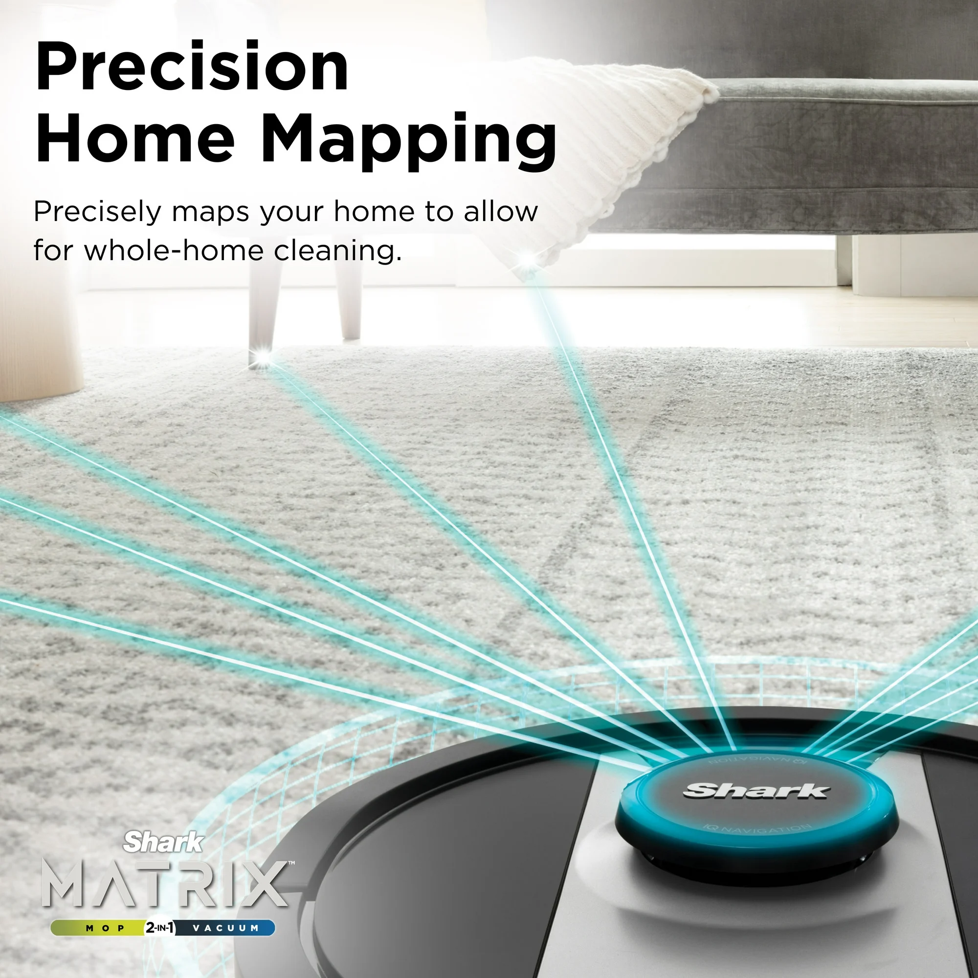 - WHATS INCLUDED: (1) Shark Matrix Robot, (1) Charging Dock, (1) Side Brush, (1) Filter, (2) Microfiber Reusable Mopping Pads, 12oz. Starter VAC MOP Cleaning Solution