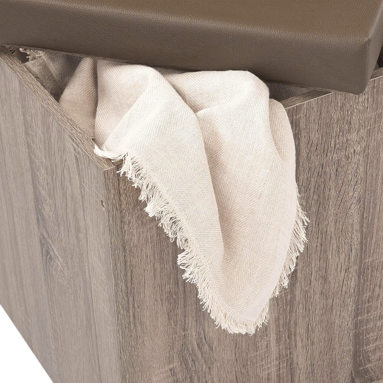 - Seats function as storage ottomans that are ideal for tablecloths, placemats, other table accessories, etc.