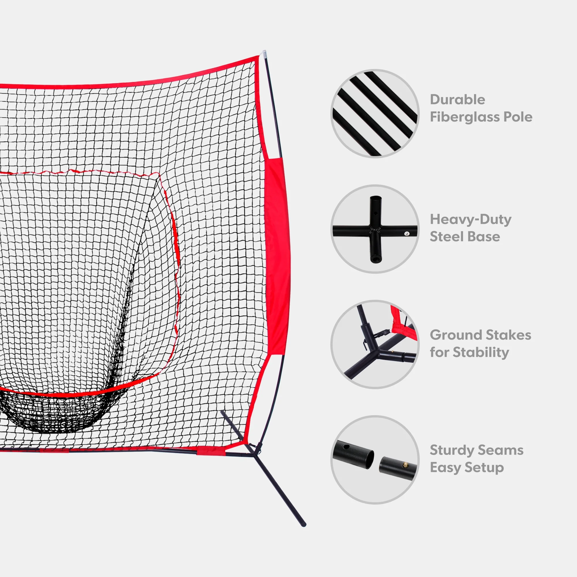 - Sturdy Construction: Powder-coated heavy-duty steel base, tear-resistant knotless polyester net, and durable fiberglass tension poles improve durability when practicing. 4 x metal stakes are also included to secure the net to grass/dirt for added stability